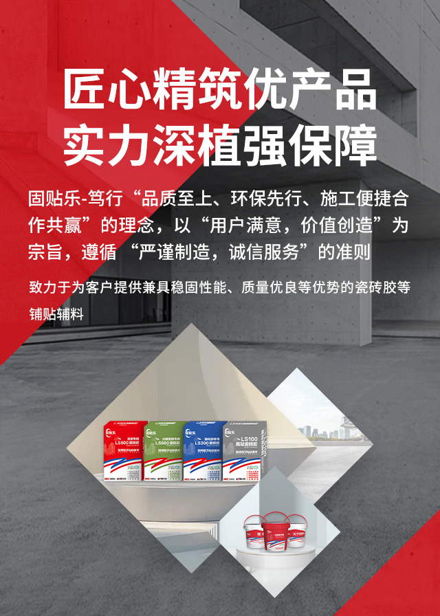 固贴乐——以创新为引擎,持续探索瓷砖铺贴辅料领域新技术、新产品;以品质为核心,严格把控生产各环节,为客户提供品质产品;以服务为宗旨,用心倾听客户需求,为客户打造多方位、贴心服务体验。